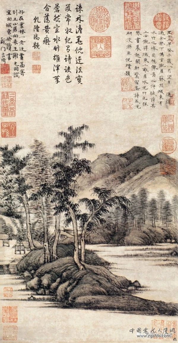 画面款跋是文人画的重要元素。宋画大多无款,或者只是隐款、小款。元代前中期赵孟頫等人的画作开始出现上款,但总体上没有大的突破。中后期,“元四家”等人的画款在内容、形式、风格等方面都别开生面,倪瓒尤为突出。
