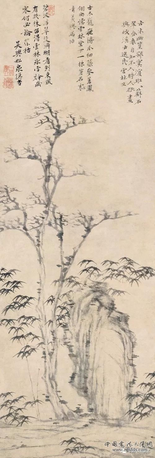 元 倪瓒 古木幽篁图轴 纸本 故宫博物院藏