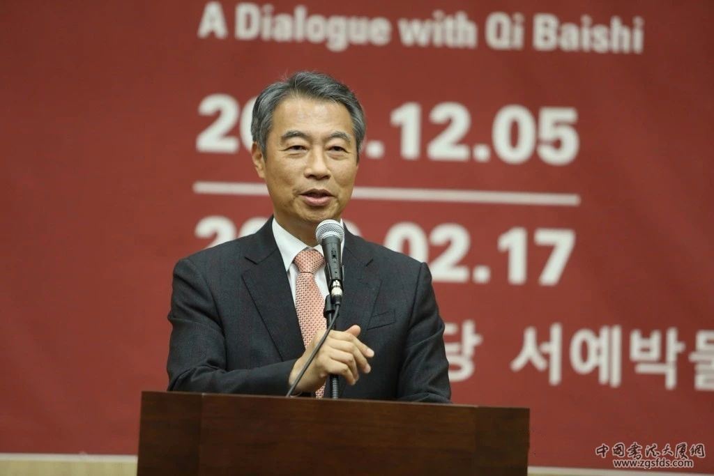 为进一步促进中韩文化交流与合作,由中国美术馆和韩国艺术殿堂联合主办,中国文化和旅游部、中国驻韩使馆、首尔中国文化中心、韩国文化体育观光部、韩国文化财厅支持的“似与不似:对话齐白石”展览开幕式于12月4日在韩国艺术殿堂书法博物馆报告厅举行。