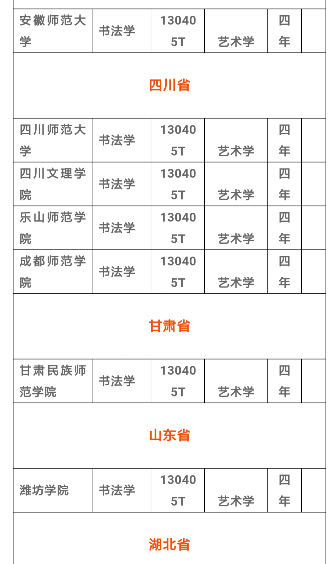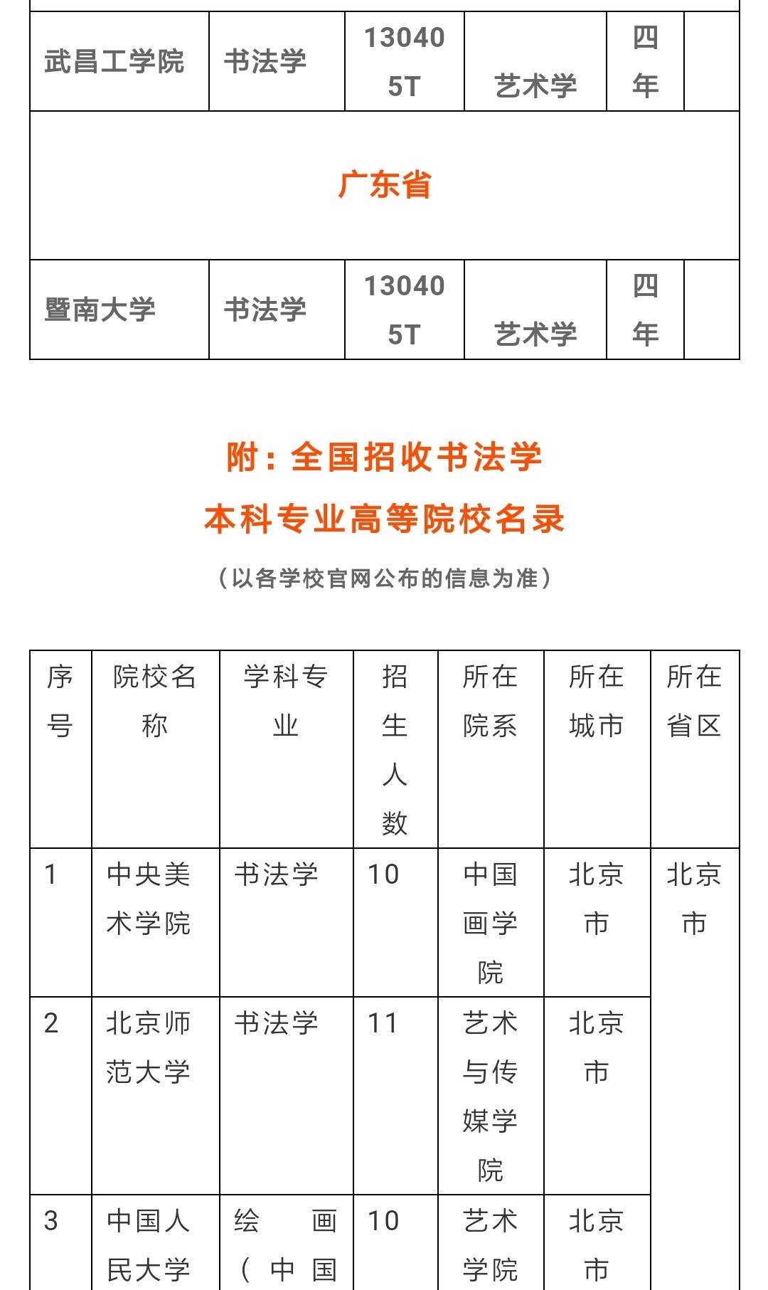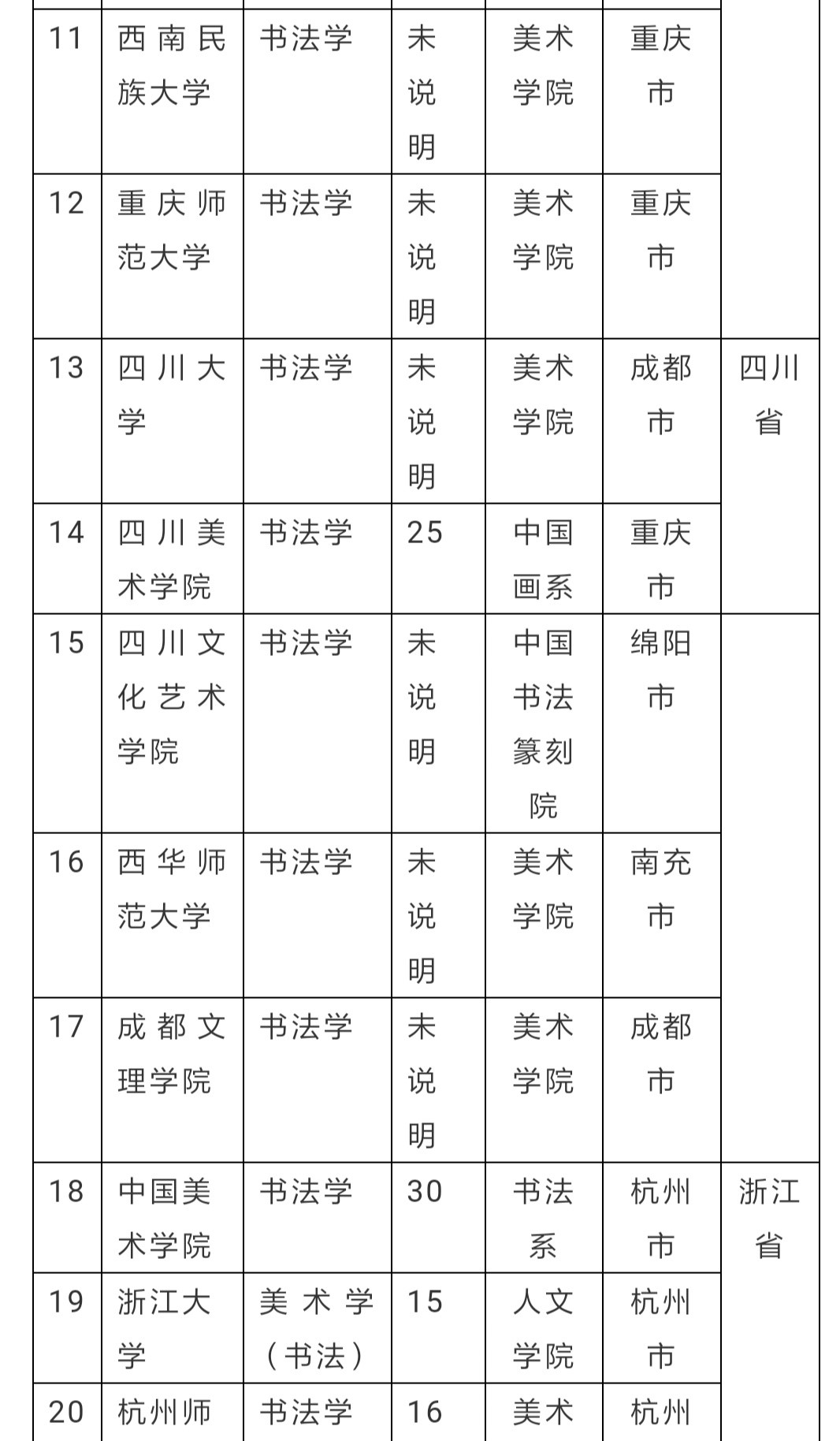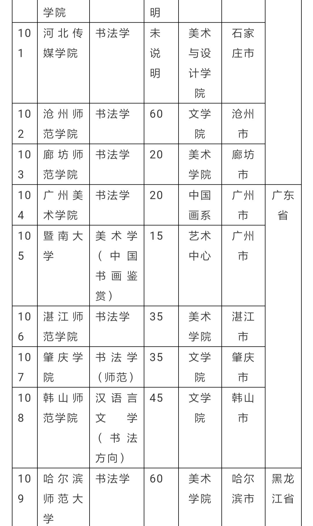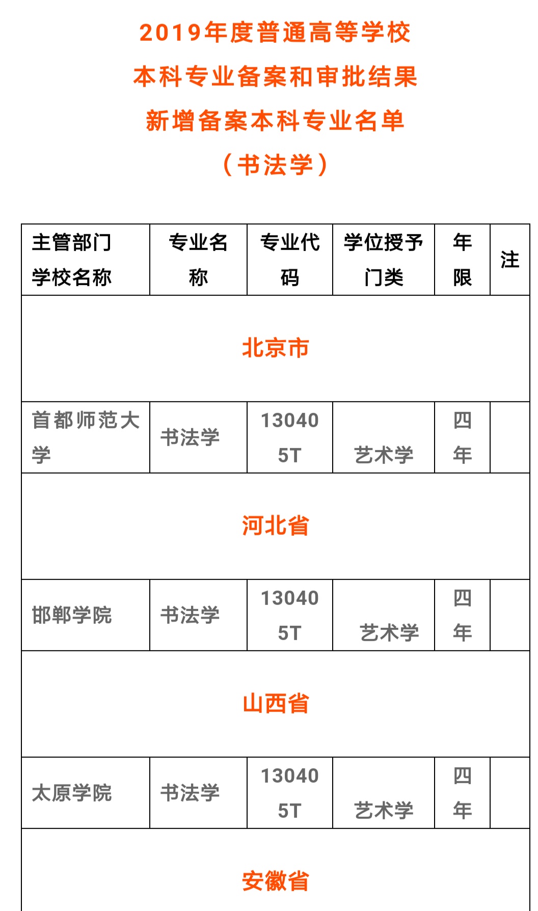 近日,教育部官网公布《2019年度普通高等学校本科专业备案和审批结果的通知》,其中12所院校新增书法学专业。