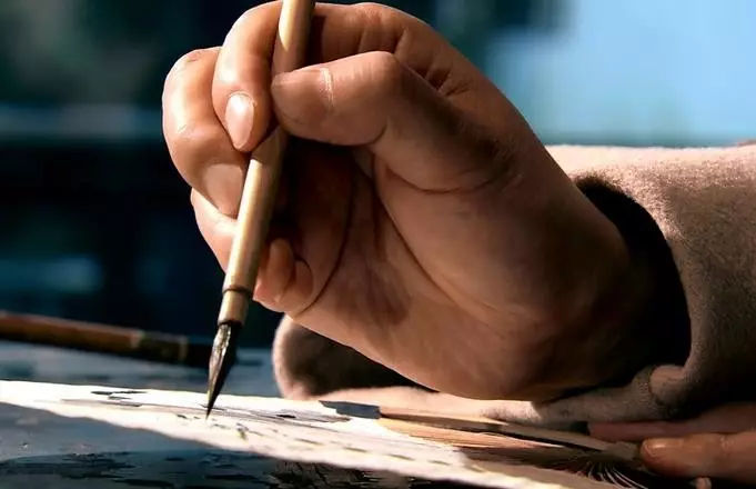 笔行纸上,须以腕送之,不当但以指头挑剔,则自无燥烈薄之弊。用之既久,渐臻纯熟沉著,而笔画间若有所以实其中者,谓之“结心”。其法始焉迟钝,后乃迅速,纯熟之极,无事思虑而出之自然,而后可以敛之为尺幅,放之为巨幛,纵则为狂逸,收则为细谨,不求如是而自无不如是者,乃为得法。古人谓笔画若刻入缣素者,用此道也,犹作书之入木三分也。