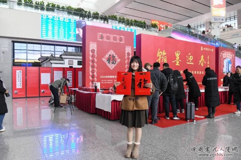 活动现场人山人海、墨香四溢,充满了浓浓的节日氛围。旅客们纷纷领取了自己满意的春联,带着吉祥的祝福满心欢喜地踏上返乡的路途。