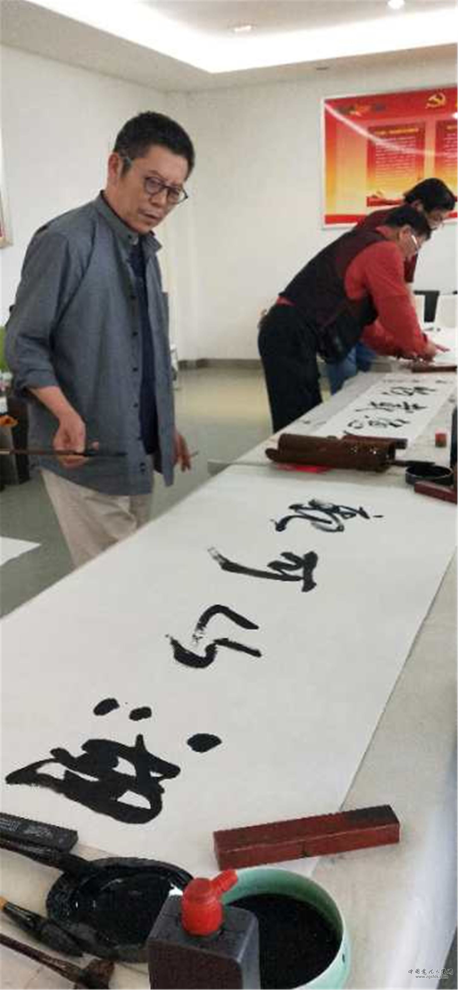 启幕仪式结束后,各领导和嘉宾于基地书法研习室进行笔会创作。