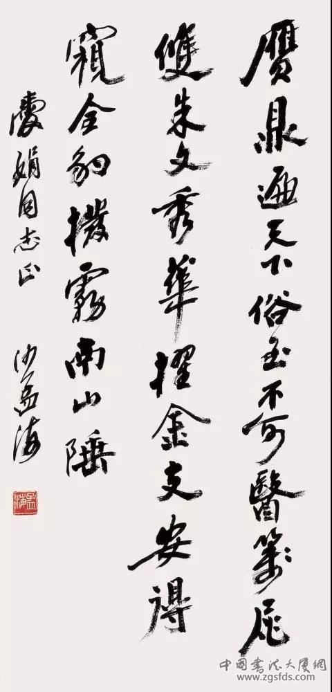 天下寺院的“大雄宝殿”多为楷书、行书或隶书,而沙孟海为灵隐寺草书大匾,一破常规,堪称一绝,结构严谨,线条厚重,笔势动中有静,完美解决苏东坡“草书难以严肃持重,大字难以精密不散”之两难论断。他87岁高龄时书写的六尺见方的巨幅“龙”字,也是他擘窠大字的代表,同被书法界誉为极品。