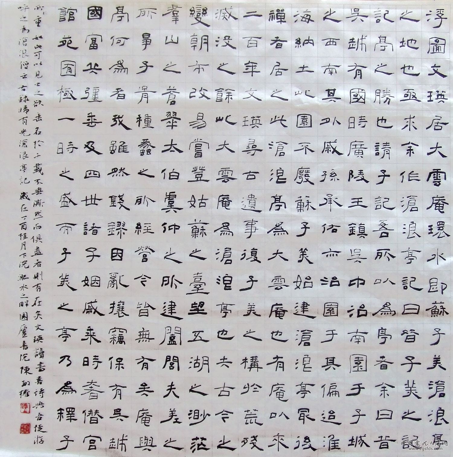 陈先生其人,见之如临秋水,爽洁澄澈。滚滚红尘,多少赤子根基不牢,一经耽染,便成浑浊。而先生年逾不惑,依然目清骨清神清,意地干净,了无一丝芥蒂,这不能不说是诗书涵泳之力。先生是资深的书法教育专家,诲人不倦,我于漫水湾临水楼之先生工作室,常见于众多弟子中,不乏有千里慕名求学者。其常年传道、授业、解惑,提携后学,显荣者多多,自谓乃“幸福的播种”。