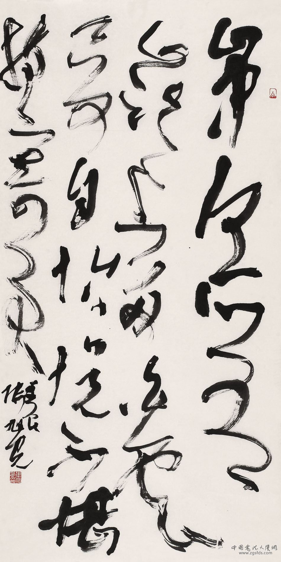 张旭光帖学以《圣教序》为基,融合王羲之手札及《伯远帖》,王献之今草,并撷取汉碑颜鲁公雄浑博大气象,将韻与势,神与意有机融合,同时又羼入今人林散之、白蕉、徐悲鸿笔意,尤其在水墨化用和线条的营构上更具创造性。他的线条具有强烈的塑造感,他在对二王绞转笔法深入理解把握的基础上通过对水墨的运用控制使其线条的营构具有了二维空间感,这是为一般习帖者所不及的。在对《圣教序》深入研悟的基础上他还提出了二王书法的结构闭合性规律,虽然他没有公开阐释他发现的这一二王书法结体规律,但这无疑与王羲之内擫笔法有关。相对而言王羲之的内擫笔法的“闭”,王献之外拓笔法则是“开”,他的开张结构,融入雄浑外拓的结构与笔势,将王献之草书的长线条化入二王手札,皆表明他力图在王羲之闭合性内擫结构中,融入外拓笔意,以求得写意帖学精神的发挥。张旭光正是沿此以进,建立起雄浑的具有强烈主体表现性的新帖学书风。这种表现主义帖学为当代帖学建立起主体性结构,使当代帖学能够在新的审美精神感召下,融入当代人文风范与审美节奏。一切历史都是当代史,帖学的价值也始终体现在它的挑战与突破机制上,书法史上真正意义上的帖学大师如怀素、米芾、王铎无不是在逆向的反叛式继承中完成了对二王帖学的伟大传承与超越,而赵孟頫、董其昌则因其始终将二王帖学视作膜拜的对象,以至最终断送了帖学。